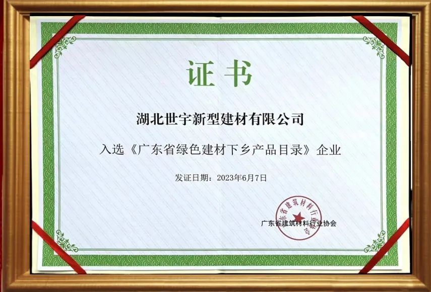 同時(shí)還成功入選“廣東綠色建材下鄉(xiāng)活動(dòng)入庫(kù)企業(yè)目錄,又以突出的品牌力、科研力、產(chǎn)品力,一舉斬獲“2022-2023年度石膏行業(yè)標(biāo)準(zhǔn)化工作先進(jìn)單位”等榮譽(yù)稱號(hào),這是世宇石膏的品質(zhì)實(shí)力,更是對(duì)世宇建材品質(zhì)堅(jiān)守的認(rèn)可。